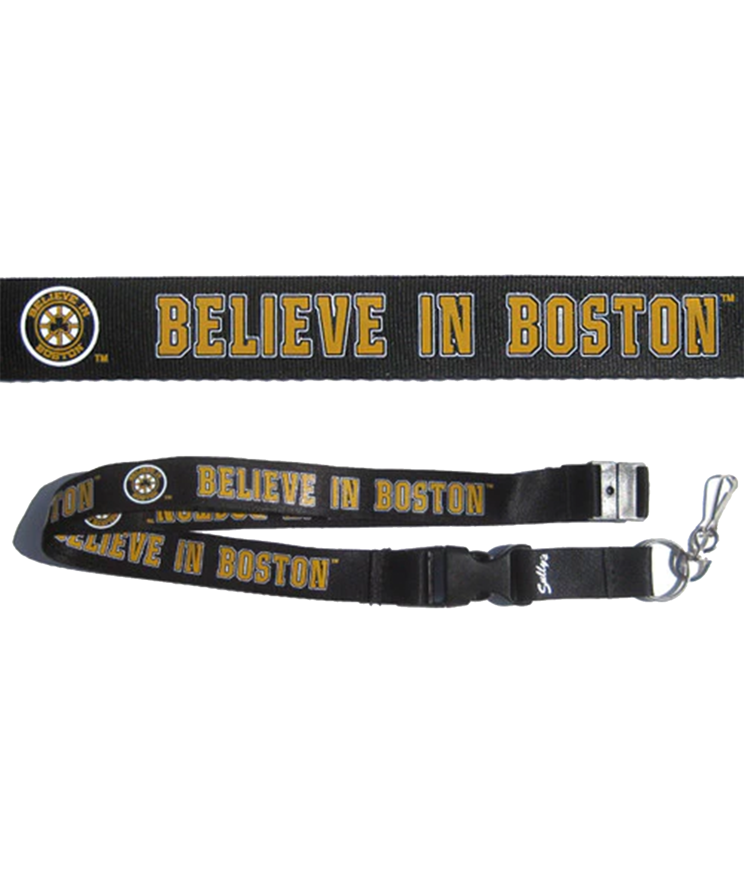 Tired of searching for your ticket stub to show security every time you return to your seats? Sully’s Believe in Boston (Black and Gold) Lanyard will have you looking good is the loge seats.